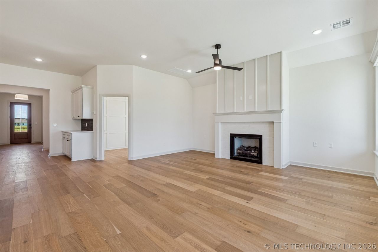 MOVE-IN READY. Home completed in October 2025 and features our Jasmine A floorplan. This brand-new, never-home features a floorplan in Rowan Grove's exclusive PRIVATE GATED community in Bixby, OK. Designed with your needs in mind, this home offers the perfect balance of comfort, style, and functionality on an East facing homesite. 3 Bedrooms + Office, 2 Baths, 2-Car Garage A fresh take on modern living, the Jasmine A is designed for those who want more than just a home, it's a lifestyle. Additional Features: Black Windows, Stucco Exterior, Craftsman Box Out Accent Wall in Flex Room, Under Cabinet Lighting in Kitchen, Quartz Countertops throughout home, Designer Tile Fireplace, Engineered Wood Flooring, Vaulted Ceiling with Stained Beams in Primary Bedroom, Wainscoting Accent Headboard Wall in Primary Bedroom, Designer Delta Faucet throughout home, Thick Frameless Glass Shower Door and Curbless Entry on Primary Shower, Designer Tile in Primary Shower, Lever Door Hardware Throughout Home. Enjoy the extended patio and sprinkler system in the landscaped yard! Butler Homes specializes in Energy Efficient homes featuring windows with Low E and Argon filled glass, Low E Exterior Doors, 95%+ HVAC efficient gas furnace, Navien tankless water heater, R-8 insulated heat and air ducts, spray foam insulation in exterior walls, R-38 blown-in attic insulation, radiant barrier attic roof decking, 100% LED light bulbs, foam sealed exterior penetrations. Butler Homes includes some of the industry's highest standards for energy efficiency, comfort and air quality. These features promise long-term savings and everyday comfort for our homeowners. Welcome to Rowan Grove, our newest and most anticipated GATED community of semi-custom, high-design homes.