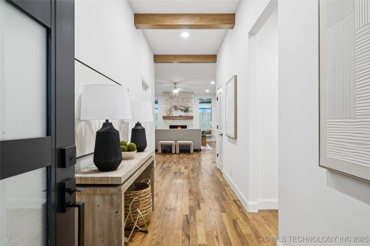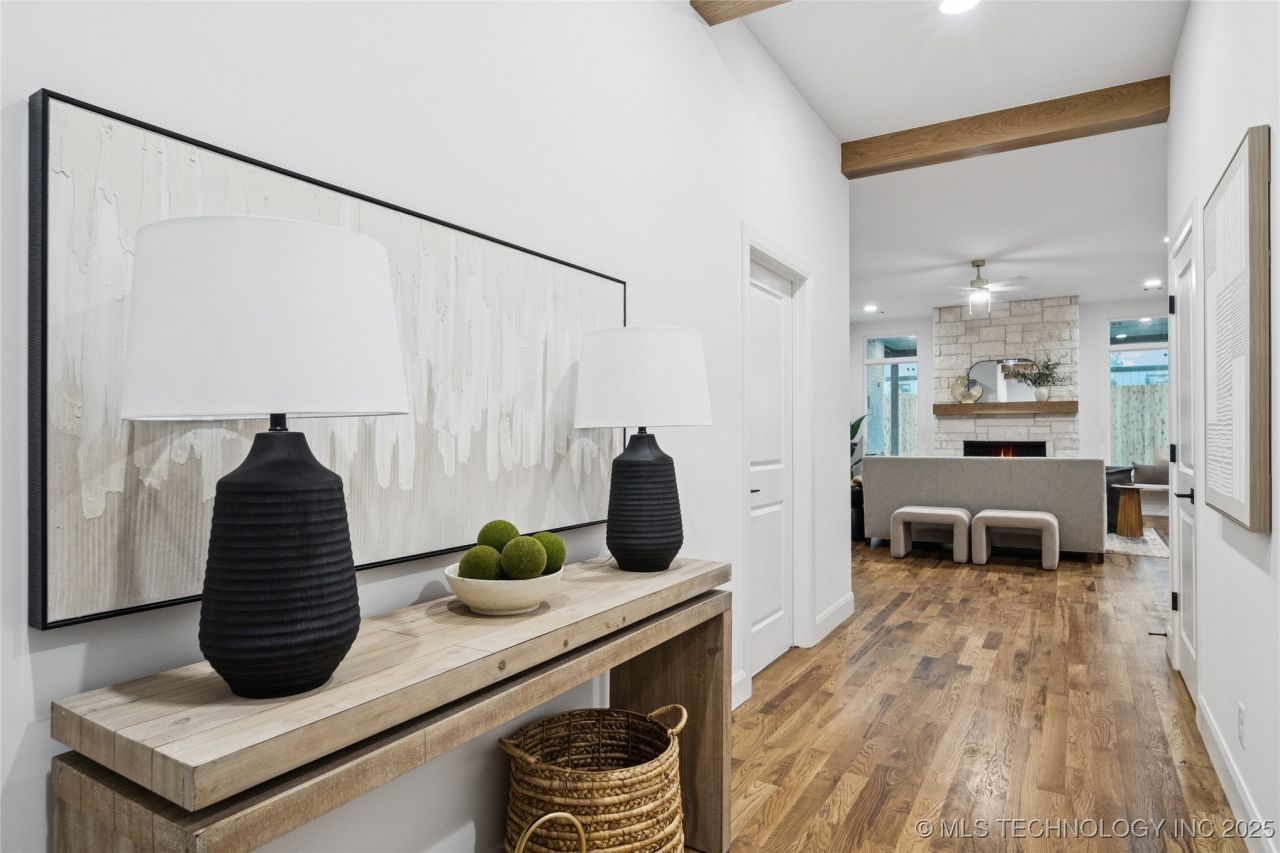Beautifully built 3-bed, 2-bath home with high ceilings, wide-plank white oak floors, and a full Austin crme stone fireplace. The chef's kitchen features quartz counters, a Frigidaire Professional appliance suite, and a beverage center. Spacious primary suite with a large, designer bathroom. WalkMB Homes, LLC in closets in all bedrooms. Covered patio wired for A/V. Smart home features throughout. Quality finishes, timeless design, and livable luxury. Listing agent is a related party to the seller.
